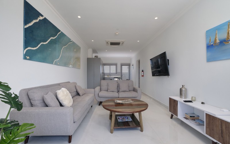 An exceptional opportunity to acquire a fully stabilized, income-producing mixed-use building in one of Aruba’s most desirable and rapidly appreciating locations. Perfectly positioned in Rooi Santo, Noord — just three minutes from Fisherman’s Hut Beach — this sophisticated property blends luxury residential living with a well-established commercial tenant, offering immediate returns and long-term value.